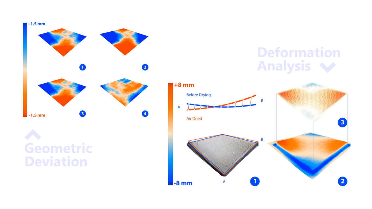 This research investigates the use of a 6-degrees-of-freedom robotic arm and a vision-based sensing framework for conformal 3D printing of clay. It focuses on printing on complex, non-planar tensile surfaces, particularly hyperbolic paraboloids (hypars), using a parametrically reconfigurable formwork system. This approach aims to enhance robotic additive manufacturing by enabling the creation of unique geometric panels and shell structures, while also observing and analyzing material behaviors, such as deformations in air-drying clay. Students: Alireza Zamani, Alale Mohseni